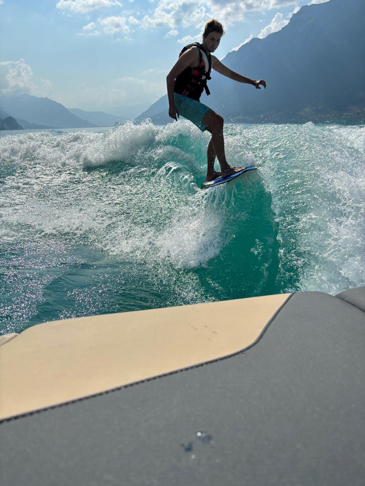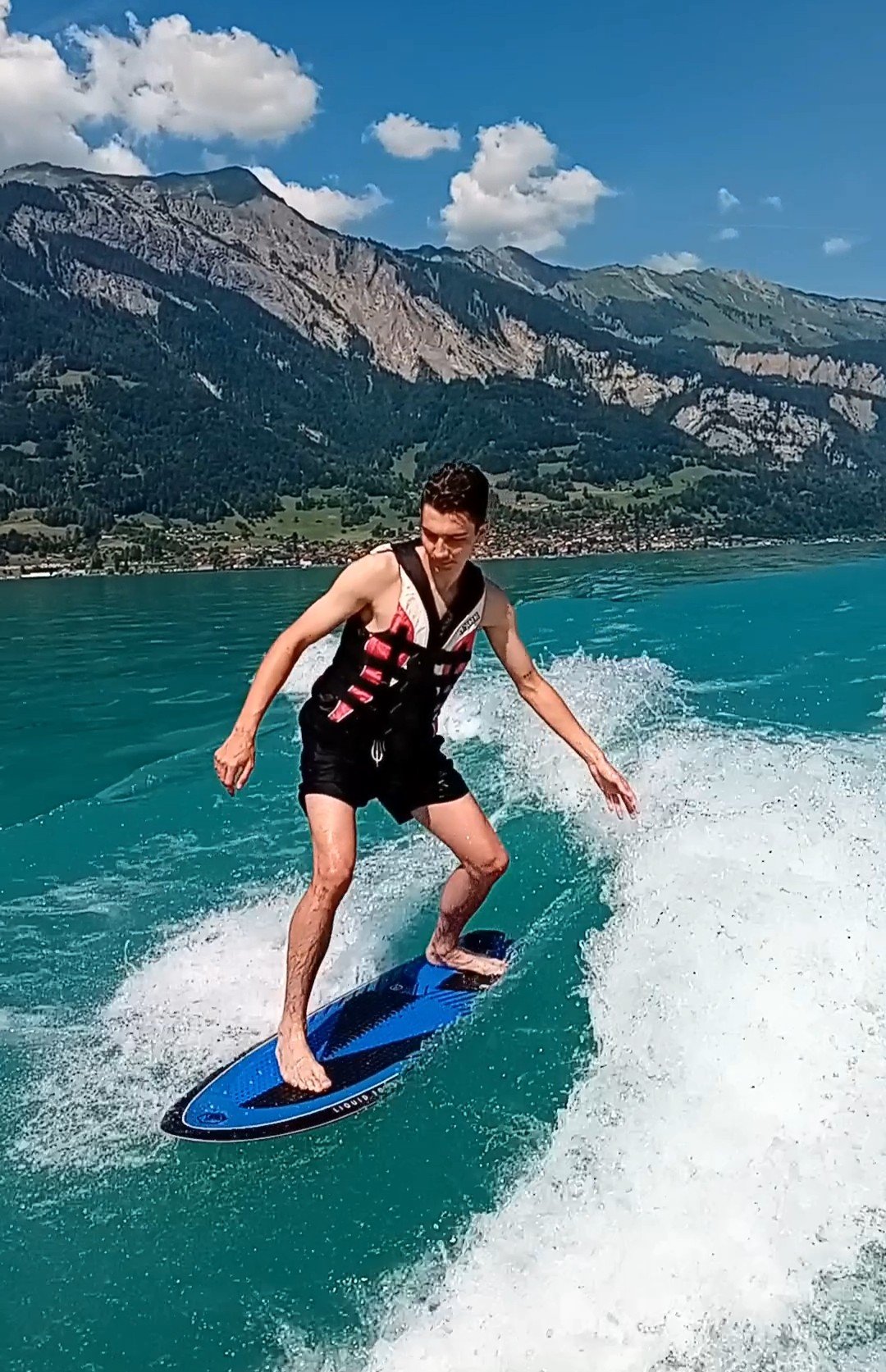 It was a wonderful and unforgettable experience wakesurfing on Lake Brienz. It simply makes me happy to be standing on the board on the lake and enjoying the beautiful weather.